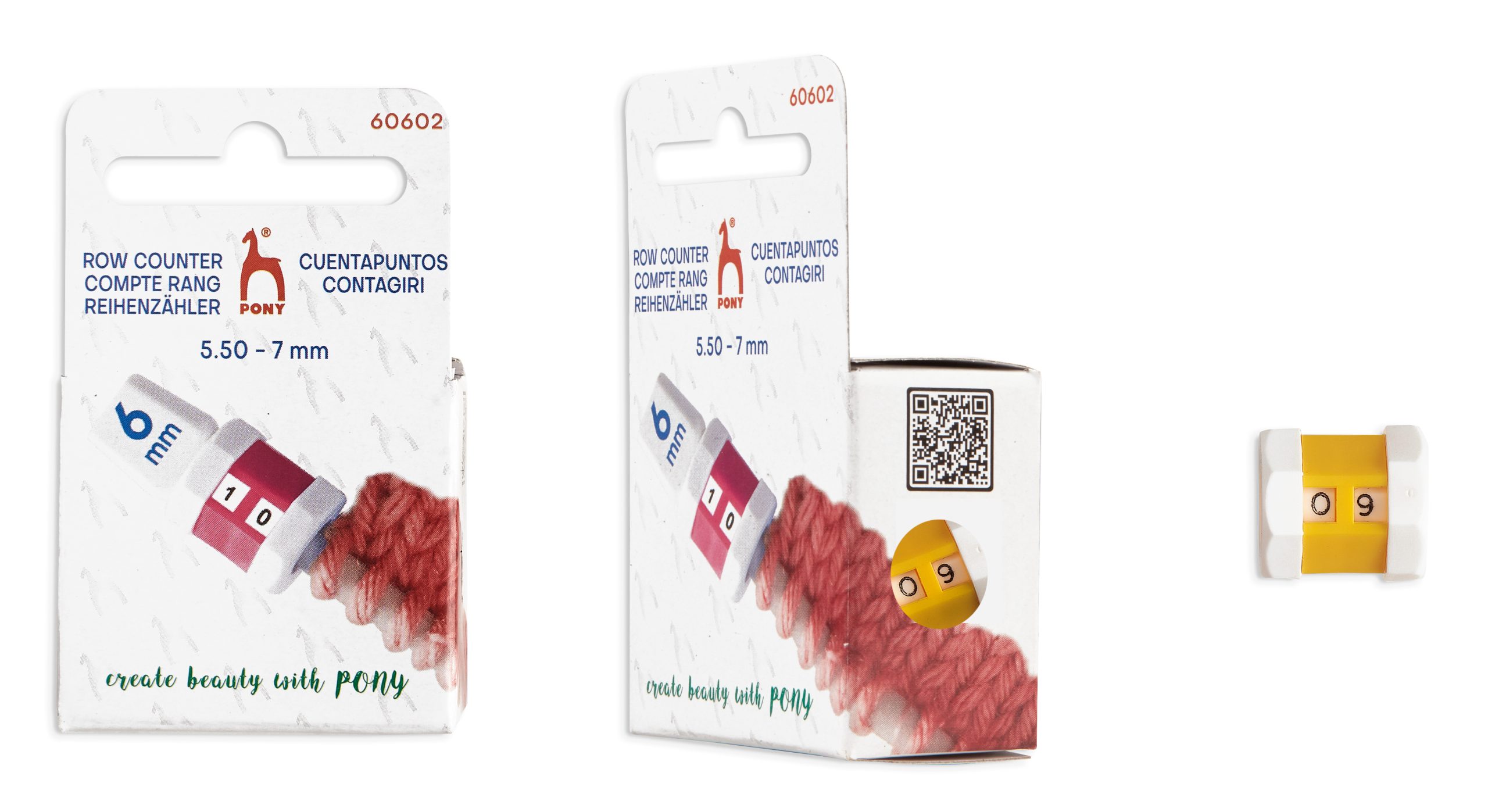 Keeps track of the number of rows knitted and slides easily onto the needle. Counts up to 99 rows before reset to 0.Made from plastic.